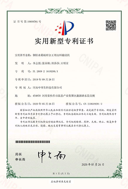 ZL201921619289X_銅鋁水箱破碎加工用出料輸送機銅鋁水箱破碎加工用出料輸送機